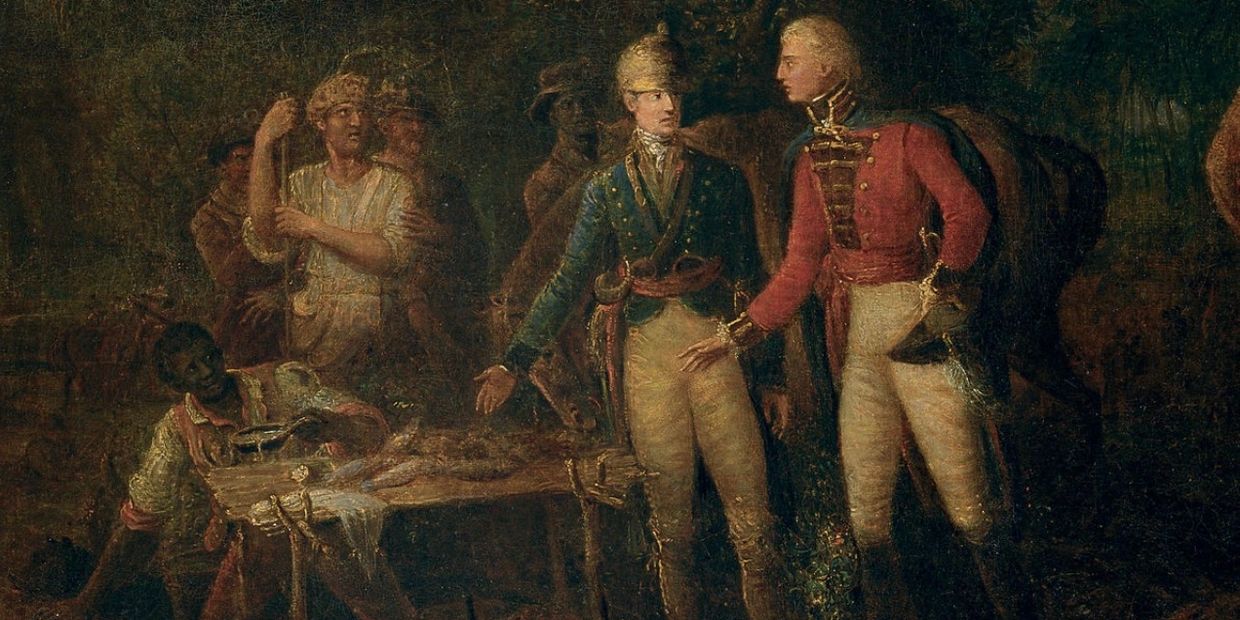 As a culinary historian, The Sweet Potato Dinner painting featured featuring Francis Marion above is by far my favorite Revolutionary War era painting.